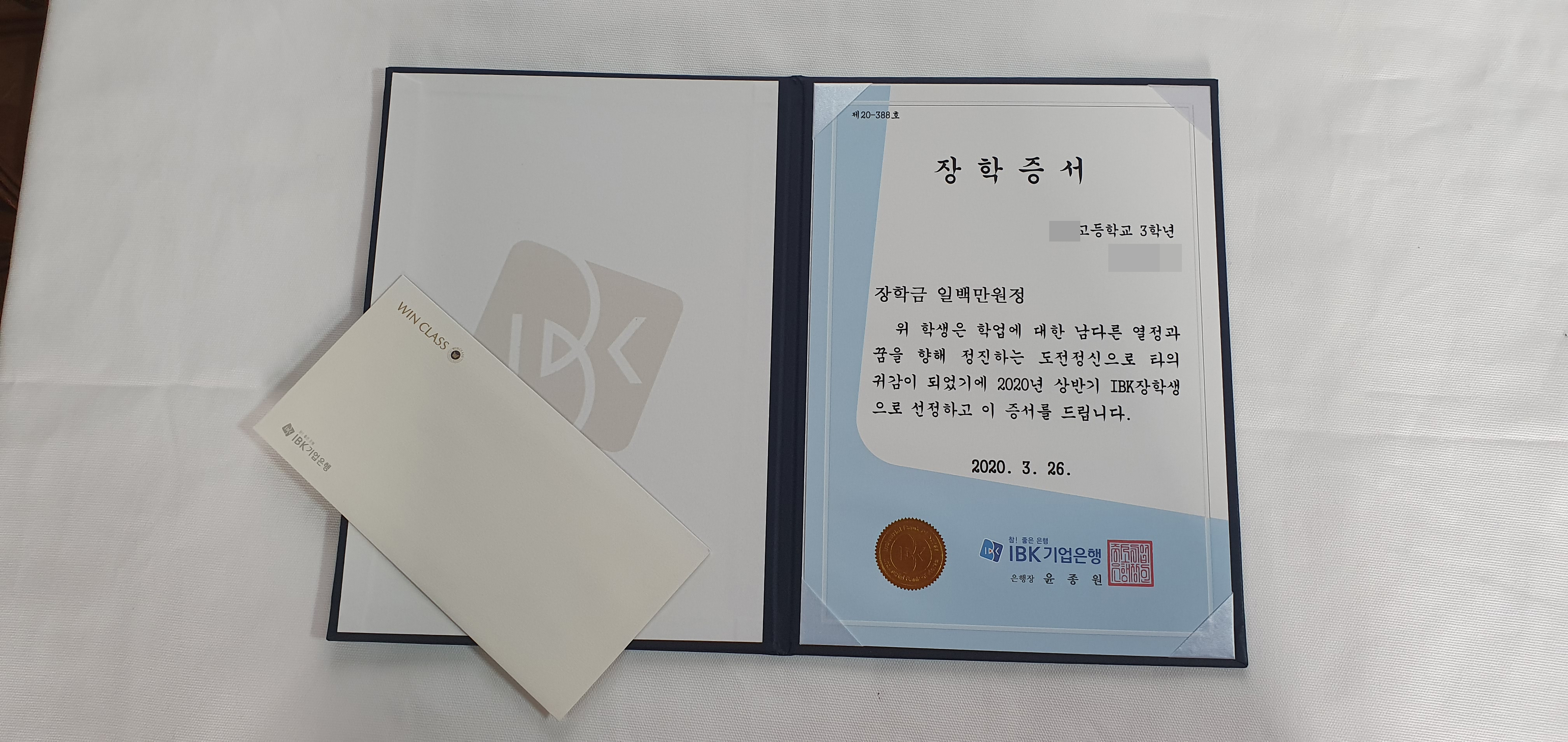 2020년 3월-기업은행(장학금 수여식)